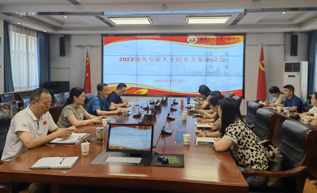 6月28日下午,我校2022级人才培养方案审议会在办公楼四楼会议室召开。校学术委员会委员及各二级学院副院长、专业建设负责人参加会议,会议由学术委员会常务副主任委员张秦龙主持。