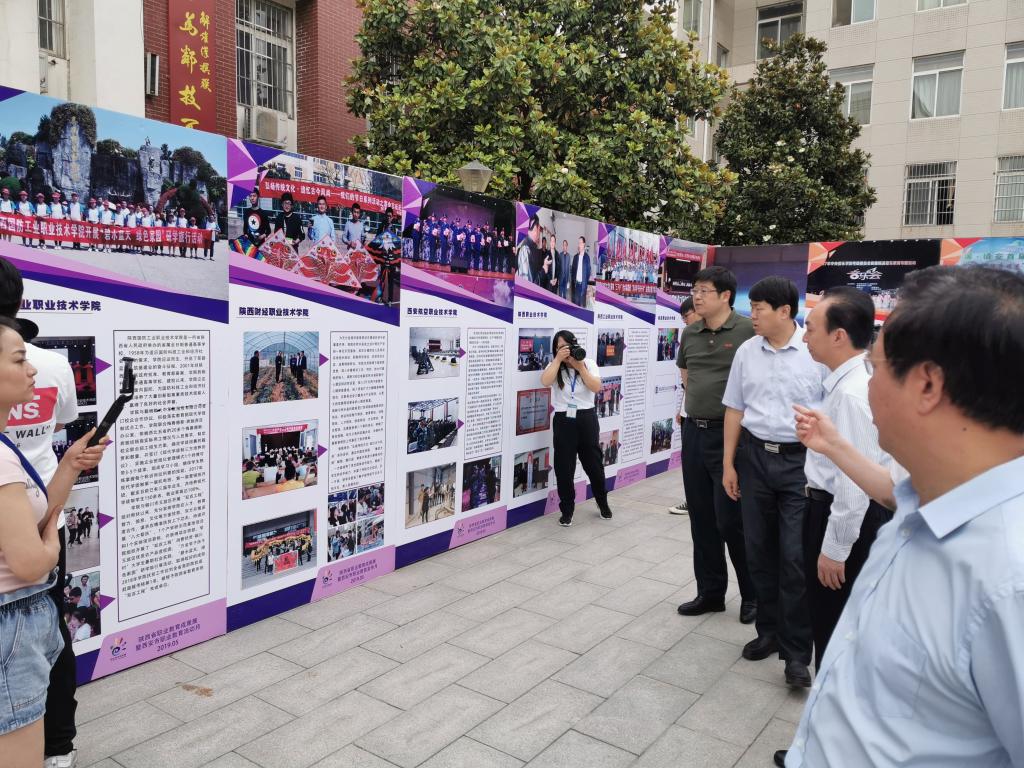 在活动现场,整齐摆放的50多块展板向社会展示陕西职业教育在支撑产业转型升级、制造强国建设、脱贫攻坚、乡村振兴、军民融合、传统文化传承等方面所取得的成果,精心设置的20多个展台,现场展示学生职业技能。