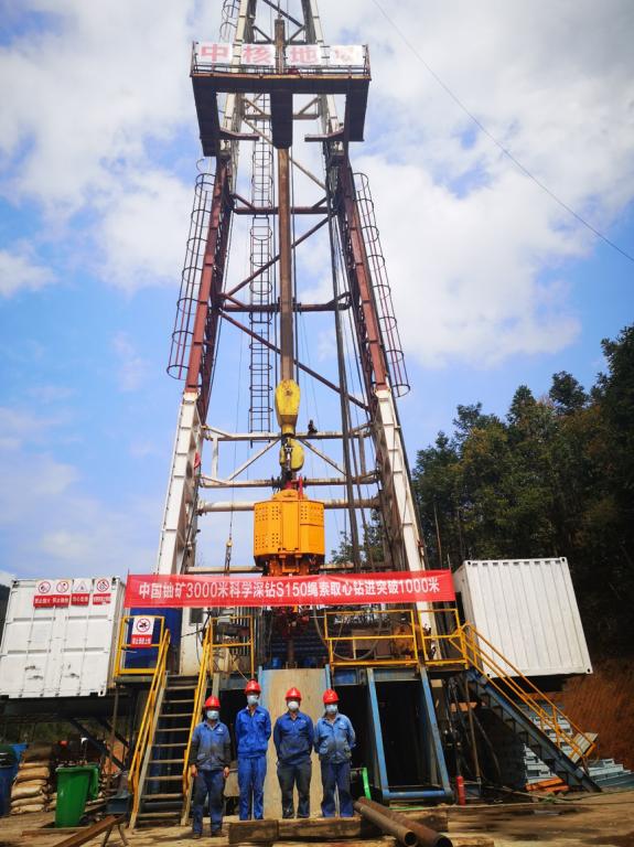 3月18日,位于江西相山铀矿田的中国铀矿3000米科学深钻(CUSD2-1)采用S150绳索取心钻进深度突破1000米,顺利完成第一阶段的钻探节点目标,创造了交流变频电动顶驱式地质岩心钻机S150规格口径绳索取心钻进的国内深度纪录。