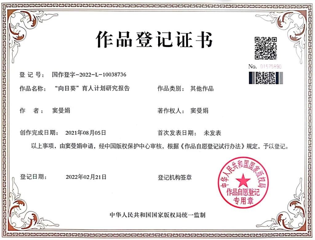 上一篇:“向日葵”育人计划人物形象“阳阳”(作品登记证书)